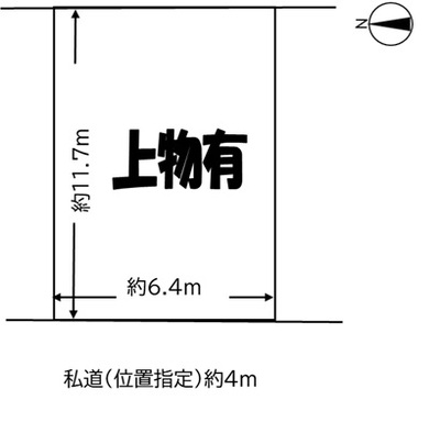 接道方向: 西 幅員: 約4m 私道(位置指定: 有) 約6.4m |